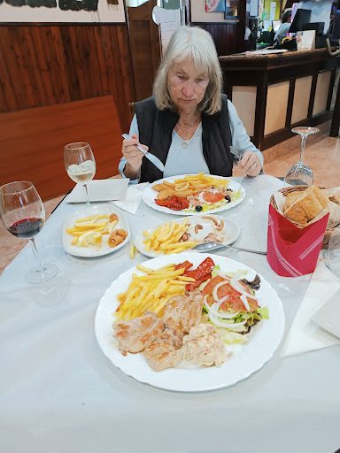 Puede chocar un poco un restaurante con ambiente australiano en medio de un pueblo gallego como Cariño, pero lo cierto es que es un buen sitio para comer. Como opciones tienes el menú del día por 9,50€ (no lo pedimos pero lo vimos en la mesa de al lado y las cantidades estaban muy bien), plato combinado, hamburguesa, pizza, o tapas/raciones. Mi hija quiso los espaguetis sin salsa y ningún problema en servirlos así aunque no estuvieran en carta (puede parecer una tontería, pero en algún otro sitio nos han puesto pegas). Las alitas de pollo también riquísimas. Los chipirones a la plancha muy ricos. Y los postres caseros estupendos. Hay que añadir que ha sido un muy buen servicio, con una única camarera pero muy atenta a todo. Como referencia de precios (muy razonables para las cantidades y calidades), decir que comimos tapa de espaguetis, tapa de alitas, ración de pimientos de Padrón, ensalada mixta, hamburguesa con bacon, entrecot, ración de chipirones plancha, tres postres, un café y una botella...