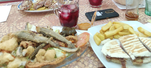 Comida bastante rica y muy bien de precio. Los chanquetes, el solomillo al whisky, el calamar frito y las gambas al ajillo estaban riquísimos. He ido en dos días con mucha afluencia de gente y nos han servido bastante bien y rápido. El local es gigantesco, así que para ese tipo de días, como un almuerzo de la mañana de Reyes o del día de la cabalgata, es perfecto. Tiene un descampado enorme justo al lado (la feria), así que se puede aparcar muy bien. Por poner algún pero, el flamenquín estaba bueno, pero el pimiento que tenía por dentro se notaba que era congelado, porque estaba muy aguado, hay que probarlo en otro momento, cuando no esperen tantísima gente, porque supongo que estarían preparados para que no se...