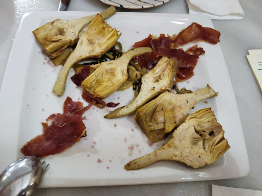 Read moreParamos de viaje para picar algo y lo que en un principio prometía iba desplomandose por momentos. Para empezar, las bebidas: un refresco y una cerveza, la primera ya servida (sin traer la botella ni servirla en el momento) y la cerveza con el vaso lleno a la mitad. La comida: pedimos media de croquetas, que vienen en el plato 3 unidades para dos personas y el espacio para rellenar dos hojas de lechugas bolsa sin aliñar y un trazo de mayonesa de bote, que desmerece a las croquetas que estaban muy buenas. Después, habitas con salmón y huevo frito, sin ninguna graciano sabor. La sal inexistente. Para cerrar unas alcachofas romanas con verduritaa y jamón. Aquí si había sal y sabor, pero el plato algo pobre con tres alcachofitas cortadas en mitades.