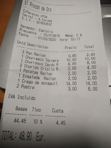 Read moreSitio para comer raciones muy agusto :). No tienen mucha variedad pero suficiente para comer genial :). La ensalada mixta riquísima y súper bien aliñada, el churrasco de ternera muy bien hecho . La atención de 10. Volveré sin duda :). Muchas gracias por vuestra atención. La ración de la foto es media pero bien llega para una persona :). Además de churrasco tienen pulpo, calamares, ensaladilla, ensalada de pasta, croquetas, calamares... Osea lo justo para que sea...