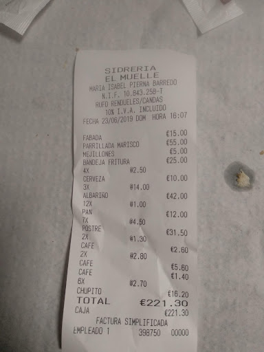 Conclusión: Se salió por 42€, pa’ como nos pusimos ni tan mal. En esta visita, es una característica de #TheInfluencerMal, llegamos aparcamos, anclamos los pies, vimos que bonito era el muelle, comimos y nos fuimos de Candás. Relación C/P: Ni arriba ni abajo Repetir? Ni confirmo ni desmiento