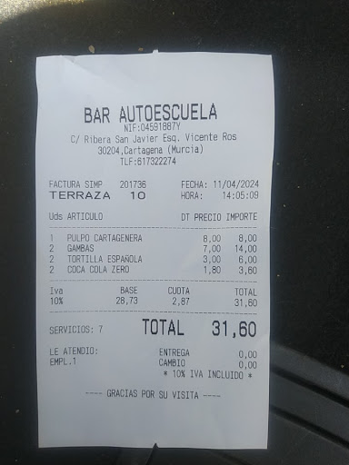 Read moreFui a desayunar y no me gustó nada el trato de la Jefa hacia su empleada, desprecio absoluto y prepotencia, la muchacha no sabía donde meterse, las tapas dejan mucho que desear, a parte habían muchas cucarachas en el local por la encimera donde se encuentra la tostadora, no volvería nunca!!!! No le doy menos estrellas...