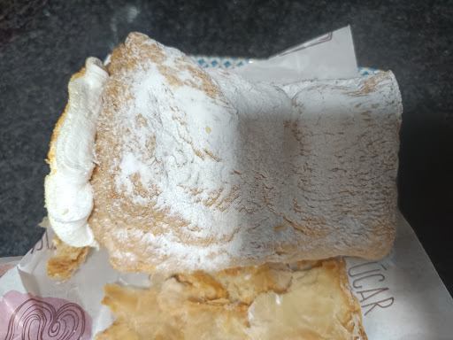 Acudí a esta pastelería, confitería y panadería situada a las afueras de la ciudad de Cartagena, donde tienen un obrador en el que preparar su variedad de productos para elegir. Tienen un amplio abanico de productos tanto de su apartado dulce con bollería y pastelería, como de su apartado salado con empanadas, hojaldres y demás. En mi caso pedí una palmera de lotus que estaba muy buena con la masa crujiente y un relleno de crema Lotus que es de mis dulce favoritos, un donut con cobertura de chocolate blanco que estaba bastante buena con una masa esponjosa la cobertura muy rica y algo crujiente, un trozo de bizcocho con chocolate que estaba muy bueno también con chocolate por fuera y en el interior pero lo mejor la masa muy esponjosa y humeda, y por último de su apartado salado una empanadilla de morcilla que estaba bien rellena con una potencia de sabor que me gustó bastante. Todo tuvo un...