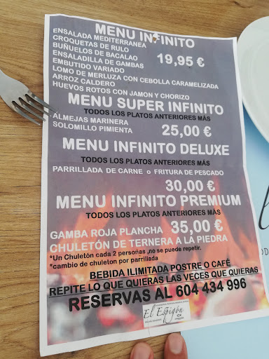 Read moreQuiero dejar constancia de nuestra pésima experiencia en este restaurante. La comida que se nos sirvió resultó completamente incomible, insalubre y de una calidad inaceptable. Los platos estaban mal elaborados, con ingredientes que daban la impresión de no estar en buen estado, y el sabor era sencillamente horrible. En particular, pedimos el menú infinito de 49'45 por persona que incluye parillada de marisco y que en la carta se anunciaba como hervido y servido caliente y lo que recibimos fue una bandeja con la mitad del marisco que se indicaba y, para colmo, todo frío. Una tomadura de pelo total y una falta de respeto hacia el cliente.