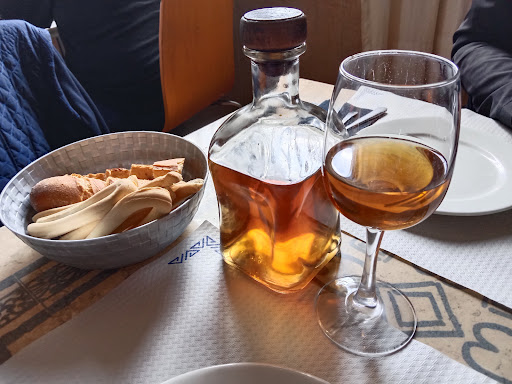 Tomando una cerveza en Timber, un local de la plaza San Francisco de Cartagena, nos recomendó el Popo, para probar comida cartagenera, el hijo de la Juani. Sin reservar allá fuimos, viernes 28 de febrero a mediodía, y gracias a la buena disposición del servicio (afluencia alta) nos ubicaron sin mucha espera. Ensalada de tomate con atún escabechado; mojama de atún y huevas con almendras fritas; michirones; alcachofas y pulpo a la cartagenera. Todo muy sabroso y rico; sólo un pero: el pulpo estaba un poco achicharrado y amargaba. De postre flan de garrofa, delicioso de textura y sabor. Para acompañar vino dorado, una garrafita, que sería espléndido un poco más frío. Todo 39,90€, pan incluido y una de agua. El arroz del menú del día que pasaba a las mesas tenía un aspecto suculento....