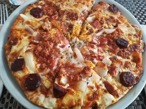 Ayer fuimos a cenar con unos amigos ,empezamos pidiendo 3 pizzas y 3 hamburguesas de Angus ,al rato viene el camarero que no le quedan Angus pedimos 3 pizzas (1 calzone sin cebolla ) 2 odiseo después de estar media hora o más esperando uno de nuestros amigos le pregunta al camarero que cuanto le queda a nuestras pizzas ya que los demás habían cenado menos nosotras ,s lo q contesta que la comanda no llegó nunca a cocina y que había una mesa de 10 fuera y que teníamos que esperar ,total finalmente nos la pusieron después de 3 cuartos de hora ,me empiezo a comer mi calzone de pollo y premio! Llena de troncos de cebolla a lo que ya enfadada pues eran casi las 12 de la noche les pido una hoja de reclamaciones porque se la había pedido sin cebolla ,más tarde el cobarde del jefe fue hablar con mi amiga porque no se atrevió a darme la cara a decirle que me había visto por las cámaras comerme la odiseo y que era alérgica a la cebolla ,a ver señor! Yo nunca dije que fuese alérgica yo tengo un problema de salud que me impide comer cebolla y así está puesto en la reclamación ,no que se alergica y si! me comí 2 trozos de la odiseo porque me tenías muerta de hambre y porque en esa pizza los trozos de cebolla eran de manera superficial y se pudieron quitar no como la calzone de pollo, nose si será legal o no grabarme por las cámaras y espiarme pero deberías tenerlo informado y 2 en vez de ir a mí amiga a preguntar vienes a mí y hablas conmigo que deja mucho que desear esa actitud, fuimos recomendados por mi amiga no te preocupes que ninguno de los 4 que íbamos con mi amiga...