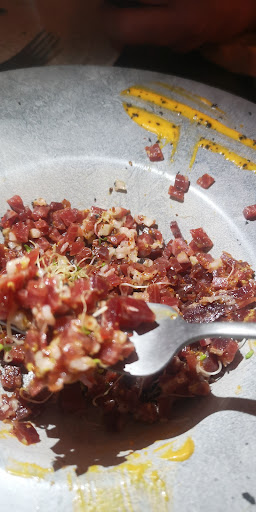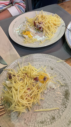 Read moreMi opinión de este lugar es negativa, tenía mesa reservada, al llegar nos tuvieron un buen rato en espera para sentarnos en nuestra mesa, lejos de ello nos querían sentar en una especie de barra alta que tienen en la entrada con otras dos personas que ya estaban allí sentadas cenando. Por fin alguien nos dijo que nos daban una mesa en la parte de arriba. Tuvimos que esperar casi media hora para que nos atendieran y pedir. Para que nos sirvieran tardaron casi media hora más, y no suficiente inectitud del servicio habían varias cosas agotadas de la carta que queríamos probar. Nos sirven la primera tapa y para el resto largas esperas para que nos trajeran el resto de platos, todo muy escaso y con falta de ingredientes en lo que decía la carta y lo que servían. El tartar de jamón, según la carta le faltaban ingredientes avisamos a la camarera, lo retira sin darnos alternativas. Al finalizar pedimos la cuenta y nos cobraron cinco euros de más en un vino que pedimos, menos mal que preguntamos el precio antes de elegir. Nuestra experiencia en este lugar NO nos ha gustado nada, esperas muy largas, confusiones en la cuenta, platos escasos y con falta de ingredientes. Fuimos con mucha ilusión y según nuestra experiencia no se lo...