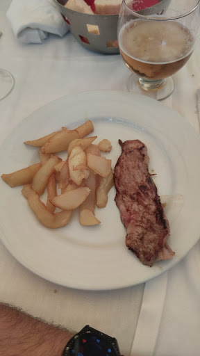 El plato fuerte era solomillo a la plancha con patatas fritas, escasa cantidad pero sin mas. En cualquier bar de barrio te lo pueden hacer mejor.
