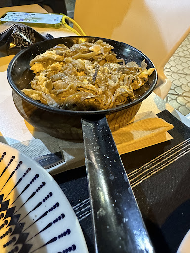 También pedimos chopitos y una sartén de huevos con jamón y patatas. Aunque solo llevaba un huevo y dos trozos grandes de jamón, el sabor era bueno, aunque por el precio (9€) podrían haber puesto más cantidad.
