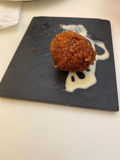 Para comenzar, las croquetas estaban muy bien calidad-precio (1,50€). Probamos la de calamar, gamba y jamón, la que más nos gustó fue la de calamar.