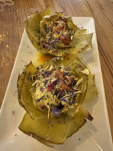Spanish education seem not to include learning english. (Most of the Spanish can't speak and understand any foreign language...) The starters were simple, had no taste and wanted to be classy. The Waygu were middle-class, served with patate fritte, too soft and 1 stripe of vegetable only! With 3 glasses of wine, 1 small bottle of water and a goodwill-tipp we payed 125,- € We left without dessert and coffee. No one of the service was interested if we were happy. Expensive -but not...