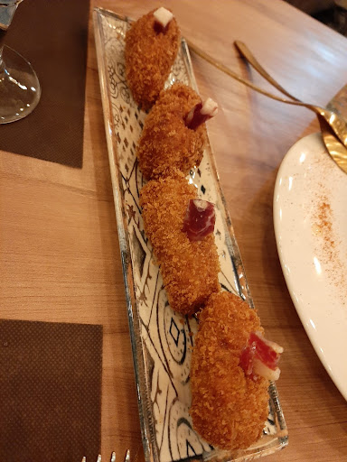 Read moreThe place tries hard to be like a gourmet restaurant and have a special menu with exclusive dishes. In fact the choice is limited to 4 main dishes, the portions are quite small, and the service is not always friendly (maybe because we are English-speaking, it was very hard to find common language, so should drink green tea instead of red one) Although the products are fresh, we personally did not wait long for our order, the dessert at the end was so vedic that we shared it for two. The place definitely stands out among the touristy surroundings, and we didn't regret coming here. A bonus is the opportunity to sit opposite Santa...