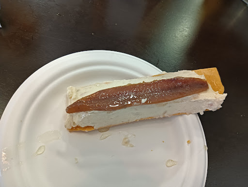 Read moreHemos encontrado un pequeño comercio gourmet, donde se sirven aperitivos, con un simpático equipo en el servicio. La cerveza bien fresquita como a mí me gusta, las gildas riquísimas, las marineras muy ricas tanto la de anchoa como la de salmón, el pintxo tito Joaquín me ha encantado como van fluyendo los sabores poco a poco, el pintxo Rita Hayworth muy muy sabroso, con un fuerte sabor a albahaca, he probado una rica ostra gilardeau.En fin, que cuando nos hemos dado cuenta, habíamos comido, con unos pintxos gourmet y por poco más de 20€ por cabeza. Me he quedado con ganas de probar las anchoas con mantequilla, los callos y los michirones, que hoy no nos cabía...