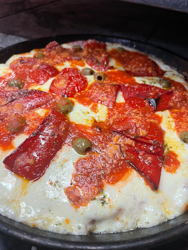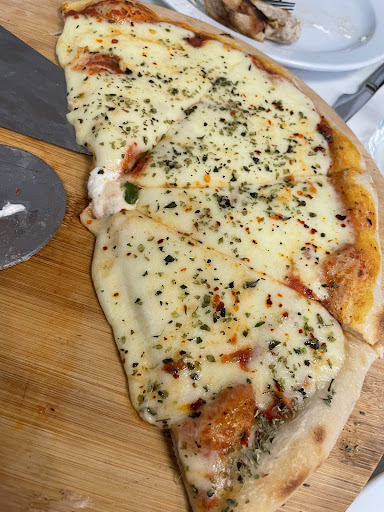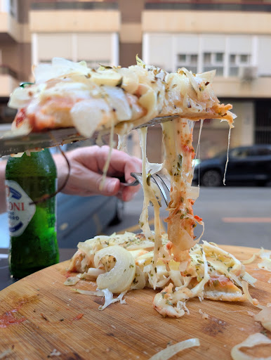 Hay dos personas trabajando: el que es claramente el dueño y un muchacho joven. Pues a mitad de servicio el jefe se va y deja al joven con todo el marrón de llamadas que no cesan (y no cogen), clientes presenciales sin tener a penas nada en la carta e incluso, pedidos de just eat llegando y teniendo que rechazar a los repartidores porque no les queda de lo que les han pedido (¿Por qué no pones no disponible el local en la app?). Bueno pues, además de todo eso, cuando nos sirven las pizzas veo que mi pizza solo lleva queso, una loncha de jamón serrano y una especie de aceite que debía de ser el último resto de la pasta de pistacho que no quedaba. Le digo al chico que mi pizza llevaba mortadela italiana y pistacho y que en esa pizzería no hay nada de eso. Me contesta que no les quedaban esos ingredientes. Pues vale, ¡Dímelo y yo decido! Pero no me hagas la pizza que a ti te de la gana. Me ofreció hacerme otra de nuevo, pero eso habría complicado quedarme hasta las mil mientras mis compañeros cenaban y yo miraba. Un despropósito, ojala haber caído en hacer una foto de la pizza que me hicieron porque era...