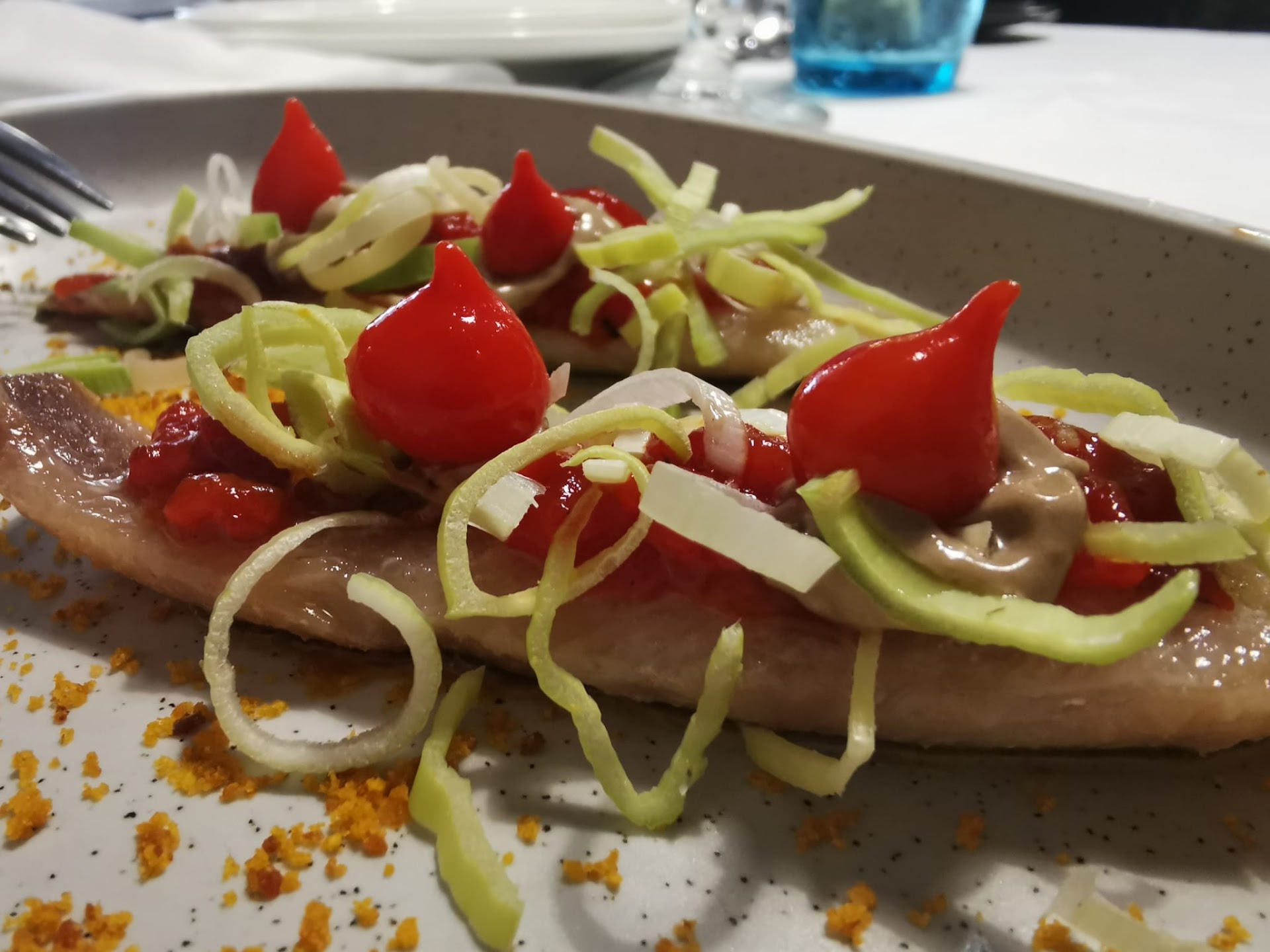 Read moreFuimos a comer en temporada baja, y aún así, estaba lleno. Fuimos con reserva. Para temporada alta no sé con cuánta antelación se debería hacer la reserva, pero yo diría que bastante. Nos encantó el sitio y la comida de 10. El entrante de cortesía de la casa ya nos estaba esperando en la mesa cuando llegamos, con lo que no nos explicaron qué era, parecía un paté de pimiento asado, pero no estoy segura. Faltó ese pequeño detalle de que nos lo explicaran al sentarnos o al tomar comanda. Pedimos las sardinas por unidades, muy buenas, y el entrante de puerros, sugerencia del día. A pesar de que estaban muy sabrosos, no eran raciones buenas, eran trozos de bocado, uno por persona, y encima uno de los trozos de puerro era la mitad de ancho que el resto. A pesar del buen bocado, cuando pagamos y vimos que nos cobraban 6 € por cada bocado de puerro, cosa que no mencionaron al cantar los fuera de carta, no nos dejó muy buen sabor de boca. Gran ganancia para el restaurante con este plato, eso sí. El resto, tanto los principales como los postres, muy buenos. La ración de pescado también un poco justa, pero bien. La salsa de tomate que llevaba por encima no parecía tener el sabor que uno espera, de una salsa de tomate casera del todo. El resto de platos, cochinillos (exquisito para sus adeptos) y raviolis, genial. Los postres riquísimos, espectacular la presentación del postre de calamansi (variedad de cítrico típico de Filipinas, más pequeño que las limas y limones aunque similar), ver la foto. En cuanto a los raviolis de chocolate, son más bien una bola, con masa sabor a churro y un chocolate fundido dentro, muy buenos. Hace poco probé uno similar en otro sitio, que siendo a mil km de distancia, no era muy distinto en cuanto a sabor. La diferencia estaba en la presentación, que eran piezas más pequeñas y lo llamaban croquetas de chocolate. Una pena que nos enteramos de cómo había que comerlos cuando oímos como se lo explicaban a la mesa de al lado, pero ya era tarde. A pesar de que nos atendieron muy bien, me parece que para el nivel que tiene este restaurante, hubo algún detalle mejorable en este aspecto. Nos invitaron a unos chupitos que pedimos de limoncello, chupitos mínimos, pero que para irnos más contentos, quisimos autoconvencernos que había sido una invitación para compensar el desfalco de los puerros. Ya se sabe que el que no se consuela es...
