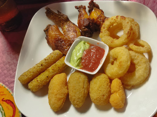 -Chili con queso. Os animo a leer la carta pero se supone que son jalapeños, queso cheddar fundido y totopos. Pues bien, totopos de bolsa, salsa cheddar de bote calentada en microondas y UNA rodaja de jalapeño. Devolví el plato y luego quisieron cobrarlo. Su explicación es que quizás no sabía yo lo que era y me esperaba otra cosa.