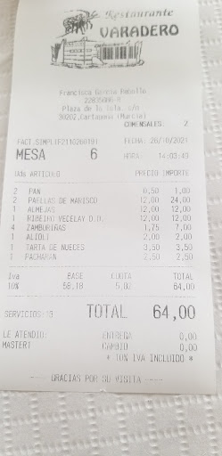 We originally found ourselves in this area because of a recommendation from a local for a restaurant near here. However, it was booked up and we didn't have a reservation so we ended up Varadero. I can say that, in our opinion, a rating in the 3s does not do this restaurant justice. We had a very good paella with fresh seafood. The waiting staff were very attentive and friendly. I see that a lot of the negative reviews were based on non English speaking staff (emm, you're in Spain!? Reviewing badly based on this just shows pure ignorance!) and on waiting times for food (personally if my paella took any shorter that 30 minutes to be prepared, that would be a source of concern. Not the other way around. Length of time is just because that's how long it takes to make a paella dish. Again people rating badly in ignorance). That's not to say the place can't be improved. The paper table cloths give the place a cheap look and I felt the waiting staff were a little pushy in trying to force some desserts on us. However, that said, if you want a decent paella at a reasonable price, you can't go wrong in choosing here. Nevermind the reviews (except this...