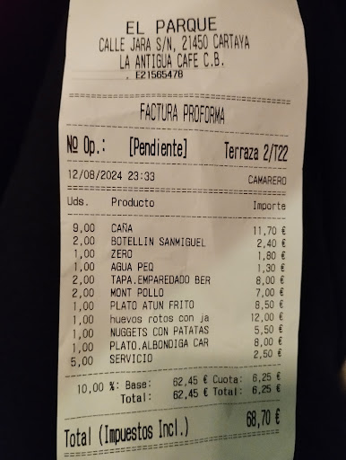 Read moreUna pena. Ha debido de cambiar de dueño o de personal por que, en un año ha cambiado la comida y el servicio 180 grados. Pedimos algo sencillo como es el montadito de pollo y el montadito de atún y para empezar el pan estaba como el de hace dos días. Cuando le llamamos la atención a una de las camareras sobre esta circunstancias poco menos que, nos reprochó la queja. En fin, uno de esos lugares ideales para no volver a cenar al menos, hasta tener la certeza de que, ha vuelto a cambiar de dueño y de personal. Lo más positivo el lugar donde se ubica el bar que, es un parque amplio y con...