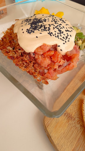 Read moreEl ambiente que había hizo que nos decantaramos por sentarnos, pero una vez comiendo entendimos que probablemente sería para unas cervezas no para comer. Pedimos carrillera, bien cocinada pero totalmente insípida. Después, por diferente, pedimos un plato rollo tailandes con pez espada: los tacos de pez espada se veían pero entre la pasta, la cantidad de salsa picante que tenía y el mal aspecto que presentaba, era del todo imposible identificar cualquier sabor, o sea, incomible. A veces gusta ver cosas nuevas en una carta, pero si lo pruebas y es ese el resultado, mejor recurrir a unos chocos fritos que...