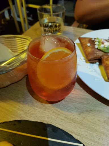 El sitio está de PM. La terraza externa es amplia y toda una gozada, muy fresquita. El ambiente es muy juvenil. El servicio es agradable y atento. En cuanto a la carta: variadisima con platos de estilos totalmente distintos aptos para saciar la curiosidad o los gustos de cualquiera, a buenos precios y de calidad excelente. La hamburguesa del chef está brutal, rellena de buenos ingredientes junto con un gran pedazo de carne picada con patatas alrededor y una salsa estilo brava super rica. Las chimichangas deben ser de los platos estrella porque casi todos a nuestro alrededor las pedían y no decepcionan, el plato te viene con tres cuadraditos de torta de trigo que envuelven a la carne con guacamole, queso feta, nata... riquísimo. El vermouth vale la pena probarlo, con sabor anaranjado muy agradable al paladar. En general, un buenísimo sitio para venir a comer que cumple con las tres B: Bueno, bonito y para la cantidad que ponen, barato. De moda...