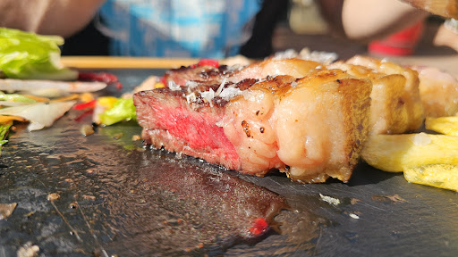 Read moreFui por primera vez y desde luego no pienso volver. Aparte de ser caro y la calidad de la comida regular. Pedimos un revuelto de gambas al Pil Pil y aparte de traer en el fondo bastante cantidad de aceite nos encontramos un trozo de estropajo de aluminio, se lo decimos a la camarera y nos dice que porque no lo habíamos dicho antes, ni una disculpa ni vino nadie a darnos una explicación ni nada, eso si te cobran 16 euros por el plato, que será por el aluminio que esta muy caro porque por 2 huevos, 6 gambas encima de un puñado de patatas a lo pobre( que eso ni es revuelto ni es na). Pedimos un plato de los montes y las patatas recalentadas y el chorizo estaba crudo aparte del lomo que estaba super seco. Pedimos una tosta esta de premios y la carne venia con huesos. Los churrascos que pedimos estaban secos y la carne estaba fría. Cuando pedimos la cuenta los precios estaban mal, reclamamos y nos dicen que han cambiado los precios de la carta pero que los de la maquina no los han cambiado y tienen que modificarlos uno a uno a la hora de cobrar, así que si algunos vais revisar la cuenta antes de pagar. A la hora de salir pasamos por la puerta de la cocina y bueno viendo lo que vi a la entrada no quiero imaginarme el reto de la cocina, suciedad por todo el suelo, lleno de papeles de servilletas, sobres de azúcar tirados por el suelo y bastante suciedad, aparte de la imagen que da, los camareros pueden resbalarse con tanta porquería por el suelo. Eso si, mucho uniforme bonito, platos de de presentación pero la verdad no lo recomiendo...
