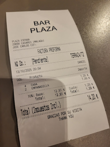 Read moreNefasto! 1. Nos sentamos en la terraza y nos dijeron que tapas solo ponían en la barra. 2. Nos vamos a la barra para tomar unas tapas y cuando estamos sentadas nos dicen que no pueden calentar las tapas porque sólo tienen un microondas y tienen preferencia las raciones, como un favor calentarían alguna si había un hueco. 3 Cuando fuimos a pagar nos dijeron que fuésemos a sacar dinero del cajero, que estaba cerca, porque no quisieron cobrarnos con tarjeta. 4. El camarero estaba fumando dentro de la barra en el interior del restaurante. 5. Las tapas eran extremadamente pequeñas. 6. El baño no tenía papel. El sitio está ubicado en una plaza muy bonita, como todo el pueblo, que es...