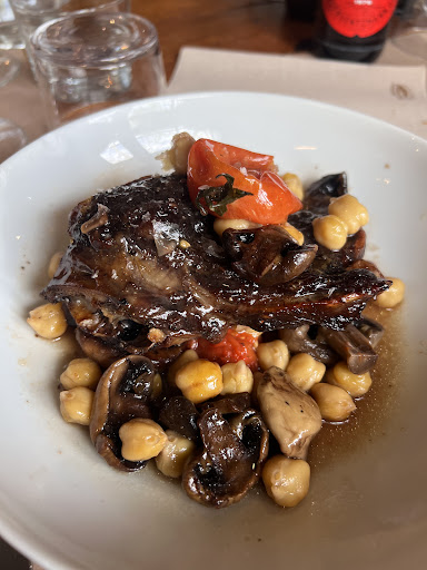 El menjar, un menú d’aproximadament 20 euros, està fantàstic, la qualitat és molt bona, tot i que alguns plats com ara el confit d’ànec amb fruits secs el podrien treballar més, sobretot la guarnició, tot i que l’ànec estava ben cuit i gustós. Les postres també podrien cuidar-se més, el més atractiu pel meu gust era el Brownie, i pel preu del menú podrien oferir quelcom més treballat. Pel preu s’hi podria fer quelcom més, més treballats els plats en quant a elaboració.