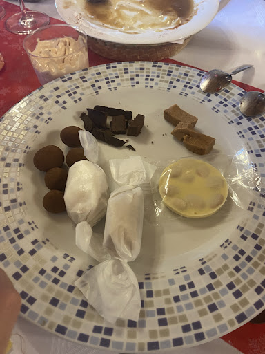 45€ de menú por persona el día de Navidad. Los entrantes fríos ya estaban en la mesa antes de llegar, los cuales eran los únicos del menú. Cantidades sin sentido, muy poco de unas cosas y mucho de otras y plato para 6 personas a compartir, lo que salías a 1 trozo de queso en esa “tabla de quesos” que presentaba el menú, igual que el salmón, que no había ni una loncha para cada uno. Los primeros eran al centro, y los segundos individuales, que me han traído el bacalao sin hacer por dentro 2 veces y al final ha acabado pidiendo pechuga con patatas para poder comer algo.