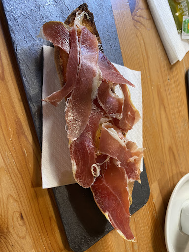 Bien servi, chaleureux et qualité moyenne. Le café le matin avec le demi taost est copieux… prix très compétitif. Je recommande l’hamburger de 200g avec frites pour 7,50€… il est vraiment bon et généreux. Les boulettes en tapas sont très bonnes avec un parfum au cumin… (un peu cher tout de même) pour ceux qui aiment évidemment… cela fait des années que je fréquente l’établissement et le service est bien en général mais le personnel change trop souvent ce qui déstabilise les clients fidèles. Les plats de pâtes gratinés sont bien appréciés du public et les pizzas ont l’air très appétissantes bien que je n’ai jamais essayé. Le côté auberge avec ses boiseries est sympathique et cosy… globalement vous ne serez pas déçu mais j’attire l’attention que comme dans beaucoup trop d’établissements en Espagne… la régularité dans la qualité n’est pas toujours au rendez-vous! Vous voilà prévenus.