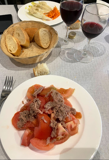Read moreEl menú es a 12,50€ , 27,60€ con 2 cafés. La comida es casera. Tienen cosas buenas, pero mi elección no fue la mejor. El tomate de la ensalada no tenia sabor alguno y estaba verde (duro), el pollo tenia plumas y para mi gusto estaba poco hecho por dentro y aceitado. El hígado buenísimo y en cantidad y la torrija muy recomendable cogerla y con un tamaño descomunal. El café es fuerte...