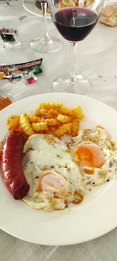 Por suerte, mi segundo plato no estaba tan malo (bacalao a la riojana), y por eso he subido un poco la nota. Mi pareja cogió huevos con chorizo; lo cual, me parece a mí, que es casi imposible que te quede mal… Por otro lado, bebimos un vino de menú, que entiendo tiene que ser uno peleón, pero es que este no era peleón, era directamente de tetra brik. Nos lo trajeron abierto, y encima pedí algo para que no se calentara la botella, y ni caso me hicieron…