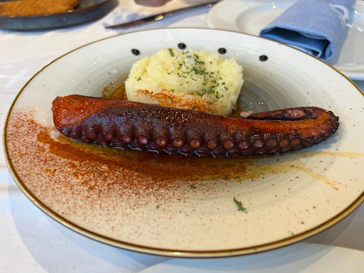 A little too expensive for what it serves and looks like a tourist trap, but overall we had a good experience, except for the bill. First time in Empuriabrava and ended at this restaurant by mistake, we wanted something good to eat and it looked good. It looks fancy and the service was as you would expect for a fancy restaurant. Despite the negative reviews about the service, every waiter there was very nice and very attentive. The food came fast and nobody hurried us. We ordered one starter for two persones- octopus ( that camed with some side of mashed potatoes) that was like an entire course, quite big. It was good but not impressive or anything and 22 eur. A portion for children with some schnitzel and mashed potatos, tasty, but was about 13 eur and was not a menu or anything. And for us, a two person paella that was over 50 eur. It had a lot of sea food, but was a little too expensive m, salty and overcooked, the sea food a little dry, but good, acceptable. One 0.5l wine bottle of wine with a good price of 13 eur and a bottle of water. We are used to the free water in France. We were suprised at the end to find the bread was billed for almost 5 eur and the overall big price for everything, even though it is a nice place. In the french sea side we didn’t pay over 90 eur for 2 adults and a child, with deserts and coffees!