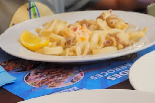 Read moreJe demande une assiette de calamars frit pour mon fils et je montre la photo sur la carte au serveur, il me dit ok. Mon fils reçoit une assiette de calamars non frit et rempli de sel. Je fais simplement remarquer à mon mari que ce n'est pas ce qui était sur la photo et que j'espérais que mon fils les mangerait vu l'aspect des petits poulpe. Le serveur se met dans tout ces états à monter le ton, tout le restaurant nous regarde, il met dit "la photo c'est la photo, ça c'est meilleur", je ne comprends pas sa réaction, calmement je lui dis simplement c'est la 1ere fois qu'il va essayer et là il s'excite "je suis un professionnel, vous parlez français? (Nous parlions français depuis le début), une photo sur le menu ça ne veut rien dire ce n'est qu'une photo, mange petit"..... Je comprends que la vie d'indépendant ou dans la restauration ne soit pas facile mais de là a traiter les client de cette manière c'est plus qu'irrespectueux, j'étais mal a l'aise tout le repas et je n'apprécie pas qu'on m'engueule de cette manière pour RIEN. Aucun prix a l'extérieur. Le prix du pain aïoli est abusif donc pas testé. Les cocktails à 10 euros sont vraiment exagéré j'ai demandé 1 San Francisco avec alcool et j'ai reçu une grenadine sans glaçon sans alcool..... Le spritz était bon. Les 4 croquettes de poulet, les bravas, ok. La paella était très bonne même si pour le prix peut garnie car les crustacés sont coupes en 2 donnant l'impression d'abondance. Le service etait rapide, la dame était gentille. Première mésaventure en 13 ans de vacances dans la région. 128e pour 2 aperos, 2 tapas, 2 paella, 2 assiette de calamars...