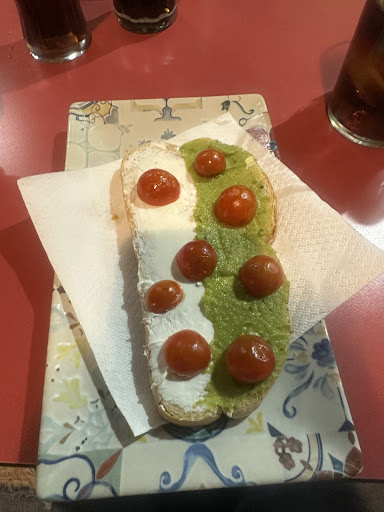 Pasamos a lo que pidió otro amigo: tosta de queso y aguacate. Le trajeron una tosta de pan (apenas tostado), con la mitad untada de queso Philadelphia y la otra mitad de guacamole del Mercadona. Jamás vi algo más lamentable. Parecía una merienda hecha por un niño de cinco años.