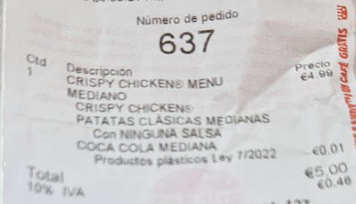 Read morePara empezar, he llegado a recoger mi pedido y de paso he pedido otro menú pequeño para mí hermano pequeño, la única persona que nos estaba atendiendo y siendo muy maja, era una chica rubia que estaba en la recepción, mientras tanto sus otros 3 compañeros estaba con los móviles si ayudarle y haciendo nada, por apariencias físicas de la mujer que nos estaba atendiendo tenía algún tipo de diversidad funcional, a lo que me quiero referir con eso, es que sus queridos compañeros la trataban de forma muy discriminatoria y mal, ya que ella es diferente y me he aguantado de no decir nada. Cuando nos han dado ya nuestro pedido mi hermano le ha pedido una bolsa a una de las chicas que estaban dentro y se la hemos pagado, y de seguido esa chica se ha ido al interior del local gritando que no tenemos educación nosotros dos, por el simple hecho de no haberle dado la gracias por la bolsa, no he aguantado más y le he dicho que cual problema tenía, que si tenía que decir algo que me lo dijera a mí y se han hecho los locos y ella no ha querido salir de dentro, mientras sus compañeros decían que no podía salir, y les he dicho que les trato con la misma educación que están teniendo con su compañera. No me han vuelto a decir nada más. Vergonzoso. Pocas personas se topan con alguien como yo, debería de darles vergüenza tener a unos empleados así y que traten a si a su clientela y a sus compañeros, y por cierto se perfectamente lo que es la educación ya que yo trabajo cara al público y con muchísima gente y ya te digo yo, que la edición no la tiene ese personaje, cada ladrón piensa que es de su misma...