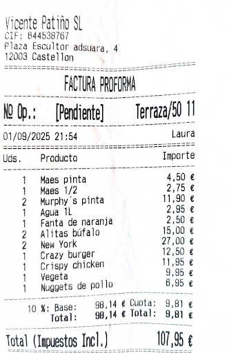 Tras la cena quedé muy decepcionado y dolido por los 15€...
