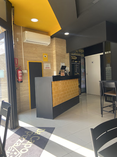 El local es pequeño y acogedor, el único problema es que dispone de pocas mesas en el interior, y la verdad, no nos fijamos si había terraza pero deducimos que no, algo que nos gusta es que se puede ver cómo se hacen las pizzas y el horno sí que es de piedra como prometen, además todo está limpio.