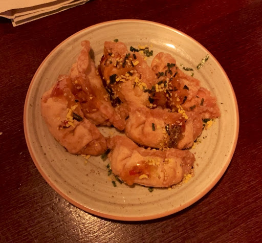 Plato de poca calidad,pero buen sabor,Sergio el chico que explica cada plato,haciendo la experiencia interesante,nos ha comentado que si los Edamames están fríos en alguna Tasca Japonesa,que salgamos escopeteados del sitio,ya que algo pasa,pues nos hemos echado a reír,los de arriba estaban fríos,entiendo porque ya que hay que esperar a que el servidor de 2 palmadas y diga la palabra (Ofrenda) para poder empezar a comer.