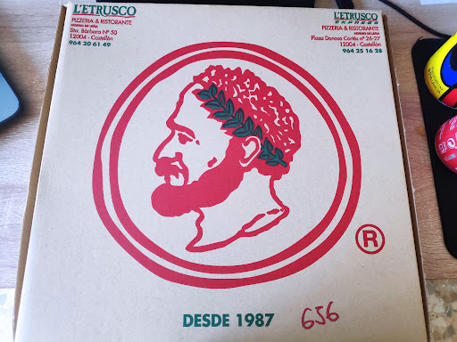 Read more¡Imprescindible pizzería en Castellón city! Volverás por su sabor y variedad de recetas 🤤 Se puede encargar para llevar, a domicilio y venir a comer al local. ℹ️ Hay otro local etrusco en la ciudad. 👏👏El servicio es muy amable y cercano. 📖La carta se compone de recetas italianas, pizzas, postres caseros... ✔️Merece la pena el menú entre semana 👌😋🥗🍝🥧 ⭕El tamaño de la pizza es generoso, da para compartir si quieres comer poco o añadir algún entrante o postre. 🤩 Es espectacular cuándo la maestra pizzera está haciendo acrobacias al aire con la masa. Ambiente muy agradable, decoración sencilla y tradicional, rústica mediterránea permanente igual que cuando se fundó 💡El interiorismo, mobiliario y la imagen (la carta) podrían mejorar mucho con una renovación para que la experiencia fuese aún más agradable 🔁 🚪En la entrada en la zona de pasillo hay mesas con blanquitos de madera cerca de la ventana. Dentro está el salón interior y los aseos. La sala es algo tenue pero bien iluminada en tono cálido.✨ Está bien aseado. ℹ️ Esta pizzería hace colaboraciones con otros negocios de bebida para que puedas pedir pizza en otros locales mientras estáis dándole al drinking 🍻🍻 y os apetece una pizza bien buena sin tener que ir a otro lugar. Muy conocida y concurrida en fines de semana y festivos. 🎉Acepta grandes grupos y celebraciones, reserva para evitar...
