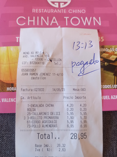 Read moreBueno es lo primero que quiero decir es que llevo 14 años viviendo por la zona y siempre hemos pedido pero de aquí a un tiempo han bajado mucho la calidad el reparto domicilio es pésimo equivocándose muchas veces en faltar género y cada vez van a peor hoy ha sido la gota que colmó el vaso ya han llevado el pedido donde le han dado la gana sin contrarrestar la dirección el chico que lo ha recibido ha podido llamarme por teléfono ya que salía en el ticket con tanta coincidencia que le había pagado el pedido porque también estaba esperando otro chino de otro sitio pensando que era el suyo sin tocar las bolsas el chico y bien precintado sorpresa llegar a casa que faltaba algo de género pero a día de hoy por my han perdido un cliente y posiblemente nos dé buenas referencias al lugar se deberían poner un poco más las...