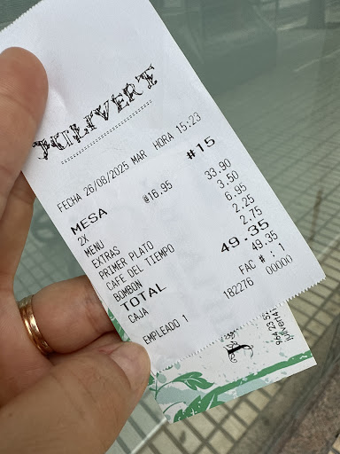 Adjunto foto del ticket. A pesar de que la atención ha sido impecable la comida deja mucho que desear y los precios aunque el menú es muy correcto el resto es desorbitado.