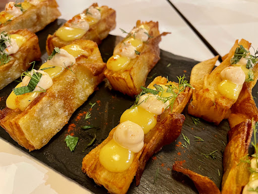 Local agradable y trato muy amable por todo el personal. En cuanto a la comida, no tengo palabras 😍 Bravas hojaldradas (en dos cocciones con ajoaceite y salsa brava Koreana) ~ 6.80€ Pancake Taiwanes (relleno de cordero, mozzarella, verduritas, sazonado con especias orientales y mayonesa de curry) ~ 9.90€ … Impresionante!!!! Buñuelo de bacalao acompañado de mayonesa de miso ~ 1.90€ Chillicrab estilo singapur 🦀(cangrejo softshell en tempura, berenjena, salsa picante y mayonesa sweet chili) ~ 11.80€ Brioche de cerdo (cerdo a baja temperatura con mayonesa siracha, cebolla encurtida y pico de gallo) ~ 8.00€ Brioche de pollo sweet chili (guiso de pollo con sweet chili, zanahoria asada, col y coco) ~ 7.50€ Torrija de horchata (acompañada de un helado de leche merengada) ~ 5.80€ Tarta de coulant de chocolate 🍫 (acompañado con helado de vainilla y chocolate caliente) ~ 5.80€
