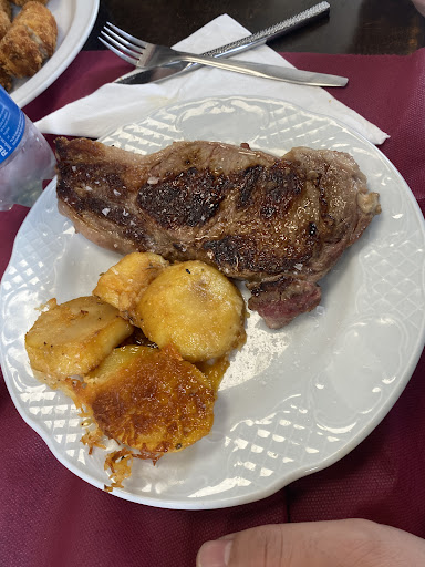 Para los segundos, probamos la carrillada con salsa de vino tinto, los huevos rotos con jamón, y el arroz negro con chipirón. Cada plato estaba perfectamente elaborado, con una presentación sencilla pero llena de carácter. El sabor profundo de la carrillada y el punto justo del arroz negro nos dejaron maravillados.