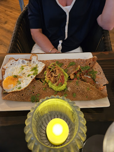 Read moreBRU-TAL. Ni siquiera durante los 3 años que vivi en Francia comí una galette tan exquisita y diferente. No lo puse fácil, porque además de celíaca tengo intolerancia a la proteïna de la leche, asi que bajo recomendación escogí la galette del día. ¡Qué maravilla de estofado!; La carne de ternera se deshacía, era melos, con su zanahoria y su salsa; mismo sabor que el de mi madre... además llevaba Cebollita caramelizada, un huevo que era frito pero no aceitoso y la masa de la galette era fina, esponjosa y a la vez crujian las pequeñas burbujas de aire. La música jazz de la terraza era envolvente y no escuchabas en absoluto los coches a su paso. La verdad que disfruté tanto como me sacié. Era evidente la calidad de los ingredientes y el esmero y mimo con el que únicamente 2 personas llevan este restaurante. El servicio es más que excelente, me encantaría volver para poder cenar en su salón Dalí....
