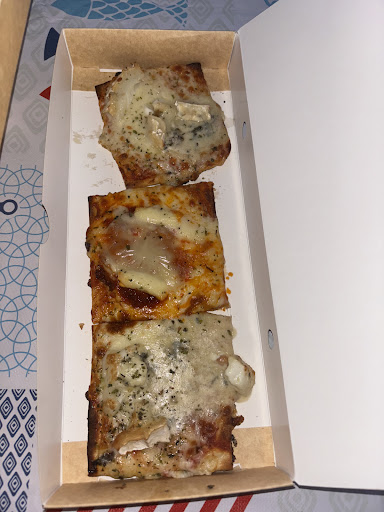 Read moreDas Konzept der 10x10 cm Pizzastücke, die individuell belegt werden können, ist recht interessant. Die Pizza schmeckt super in allen von uns probierten Konstellationen und wird sehr schnell gebracht.