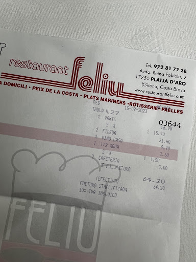 Read moreI recently had the pleasure of dining at Feliu and I must say, it was an absolutely delightful experience! From the moment we walked in, we were greeted with warmth and genuine hospitality that made us feel right at home. The family-friendly atmosphere was perfect, creating a cozy and inviting ambiance.