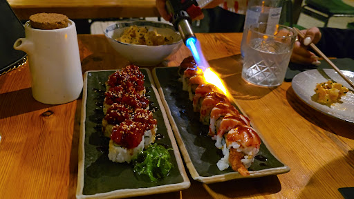 Read moreLugar nada recomendable, he ido con mi pareja a cenar, si gustan las eternas esperas para que te sirvan y te el arroz pasado de cocción con cosas (porque de sushi no tiene nada). Primero ha llegado un sashimi con un corte excesivamente grueso y caliente, después el yakisoba de pollo y verduras, que debería llamarse virutas de pollo con 1 trozo de pimiento rojo y verde... Al cabo de más de 30 minutos han llegado los niguiris de salmón y de anguila con "foie", de aquí mí primer comentario de arroz pasado... El de anguila, que lo sabemos porque lo ponía en la carta, ya que el camarero lo ha flambeado en la mesa y pasaba tranquilamente por un niguiri de butano, finalmente para rematar y tras otros 28 minutos y 2 reclamaciones a los camareros (ni se han inmutado por cierto) unos rolls tropicales, imagino que lo de tropical es por el minúsculo cuadrado de mango, donde si os digo que con un tienen para 1000 unidades tranquilamente no me desvío mucho... Lógicamente no hemos pedido postre, ni café por miedo a que se nos juntara con el desayuno. Eso sí, el responsable del local, por poner un calificativo, ya que no le ha hecho ni el más mínimo caso a nuestro comentario sobre los tiempos y el servicio, le hemos pedido la cuenta, no se ha demorado ni 40 segundos.