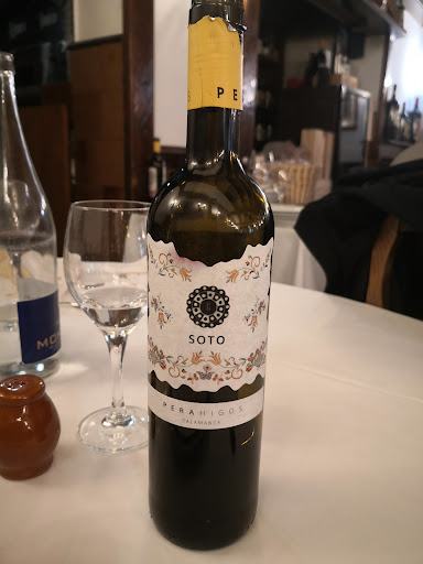 Fui con ilusión, salí desilusionado y desencantado, para no volver, ni recomendar nunca más Los precios carisimos, la comida muy escasa, una total desproporción entre precio, calidad y cantidad. No sé de dónde le viene su fama 32€ el menú en domingo: 1- Sopa de marisco, tres cazos 2- Bacalao a la vizcaina, escaso, insípido, con un poco de salsa que cubría la parte del plato, donde el bacalao no llegaba. Les sugiero que vayan a Portugal, Vilar Formoso, al RESTAURANTE CASA OLIVEIRA, y vean como se prepara un buen bacalao, sin abusar del precio, donde se ofrece calidad, servicio y profesionalidad, con precio asequible 3- Arroz con leche, del que te deja los granitos entre los dientes, por su mala cocción, y aclaro que pedí el arroz para quitar el hambre 4- Panecillo 5- Vino tinto bodegas Perahigos, de la Sierra de Salamanca , gordo, áspero, y servido muy frío Y 32€ la broma, eso sí, te invitan a un café, con una sonrisa y cortesía de la casa Que alguien no lo cree, sencillo, que vaya, mire la carta y vea o mejor que pida este mismo menú Ahí dejo fotos de la carta, del vino y los platos ¡Ojito! con estos gloriosos mesones, o ventas, a la vera del camino, y afamados en celebraciones y EN DESCARADOS SABLAZOS