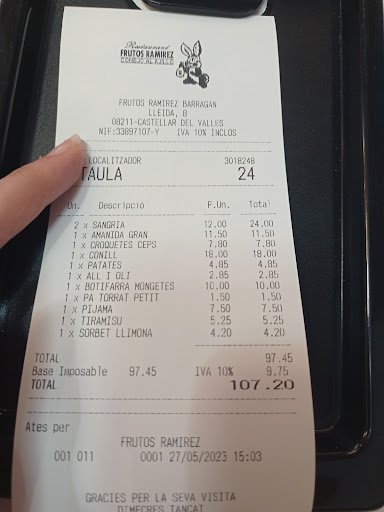 En resumen que nos salía una diferencia de cerca de 60€ de mas a los precios de carta y al reclamar nos dicen que era por el IVA y por el pan y el alioli.