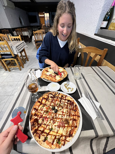 Read moreEn vacances dans la région, nous nous sommes arrêtés par hasard dans ce restaurant et c'était une merveilleuse bonne surprise 😀 La serveuse a été adorable : elle ne parlait pas français (et nous pas espagnol) et a pris le temps de nous expliquer chaque ligne du menu en anglais. Nous avons pris le menu du jour (9,5€) avec une salade composée en entrée (il y a d'autres choix) puis poulet aux pruneaux et frites pour moi et calamars à l'Andalouse et frites pour mon conjoint. C'était délicieux !! Il y a un menu enfant où les enfants peuvent choisir entre à peu près tout (steak haché, poulet, pâtes, pizzas...). Nous avons également tous pris un dessert (un client belge francophone nous gentiment a traduit la carte des desserts !). Avec tout ce copieux repas nous avons eu : 1L d'eau en bouteille + 1 bouteille de rosé + 0,5L de limonade ! Mes filles n'ont pas pu terminer leurs énormes et délicieuses pizzas et nous avons pu repartir avec les restes. Nous avons payé 36€ pour ce repas à 4, ce n'est vraiment pas cher. Outre l'excellent rapport qualité / prix, je tiens à souligner l'extrême gentillesse et bienveillance de tout le personnel. Si vous passez à Castellbell, arrêtez vous sans faute...